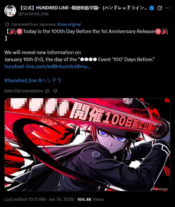 Quelque chose sur The Hundred Line: Last Defense Academy le 16 Janvier :