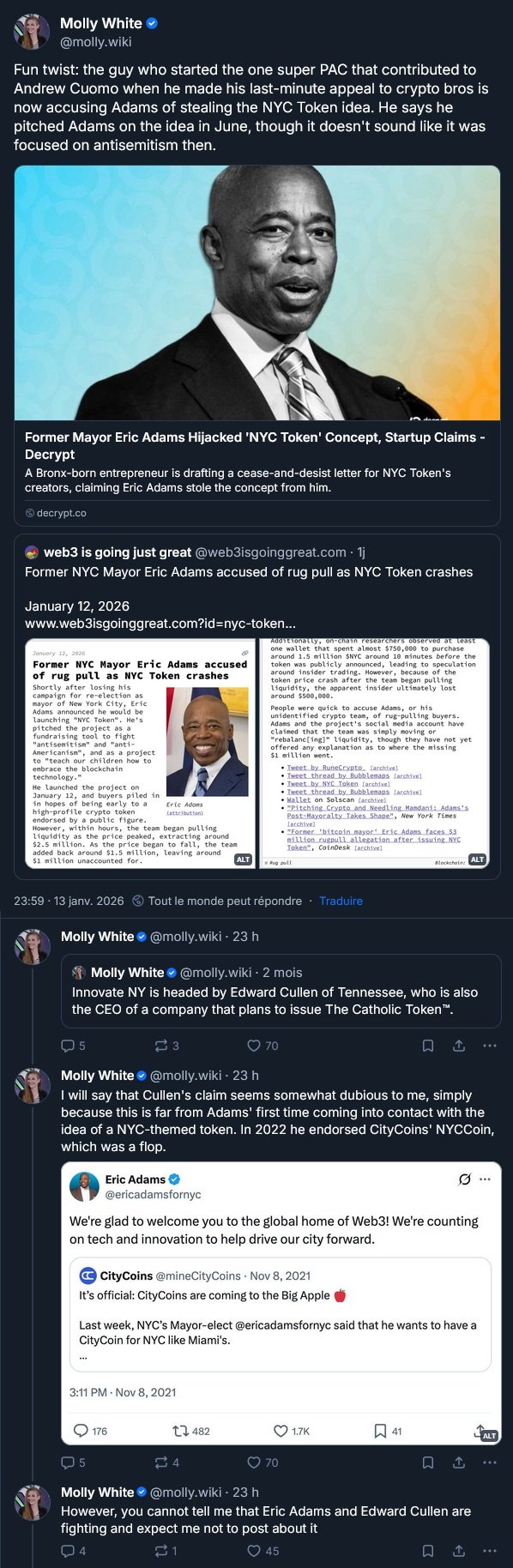 Des rebondissements dans l’affaire du memecoin de l’ancien maire de New York contre l’antisémitisme :