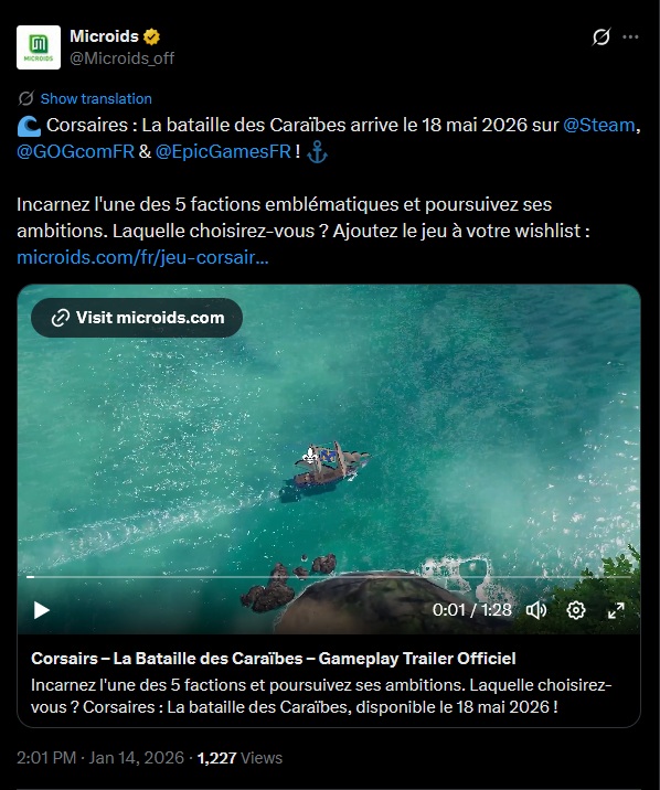 Le RTS Corsairs – La Bataille des Caraibes sort le 17 Mai sur Steam, GOG, l’Epic Games Store, PS5 et Xbox Series :