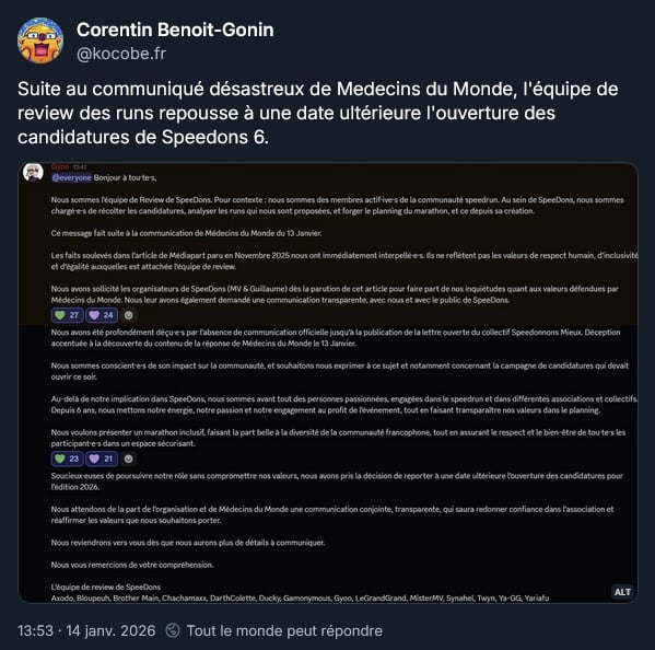 L’équipe de review des runs du marathon caritatif Speedons repousse à une date ultérieure l'ouverture des candidatures :