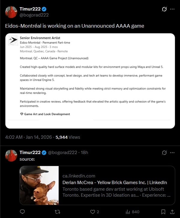 Selon un profil LinkedIn, Eidos Montréal travaillerait sur un jeu « AAAA » :