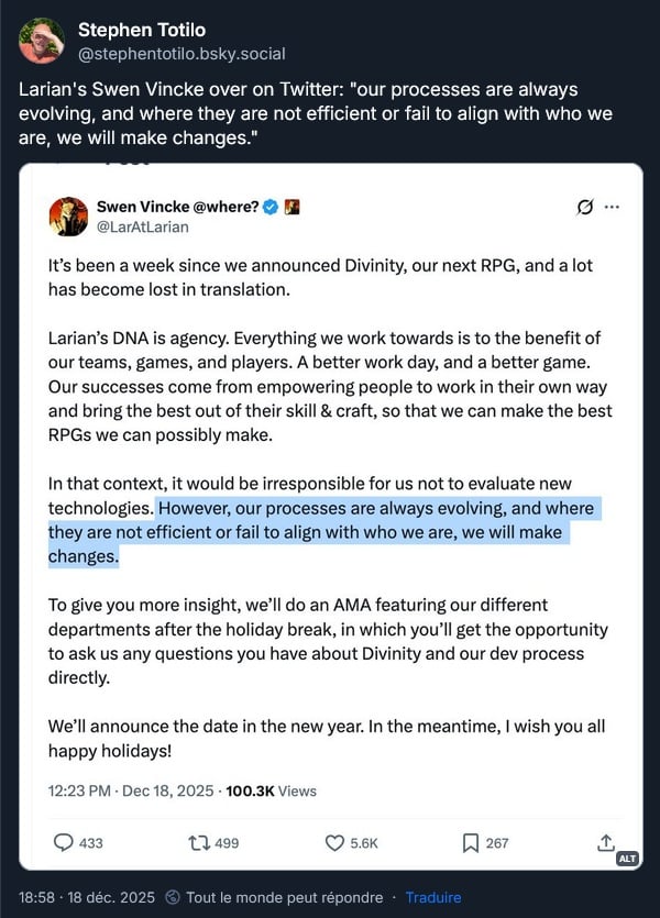 Swen Vincke organise un AMA avec les différents départements de Larian pour poser des questions sur les processus de développement :
