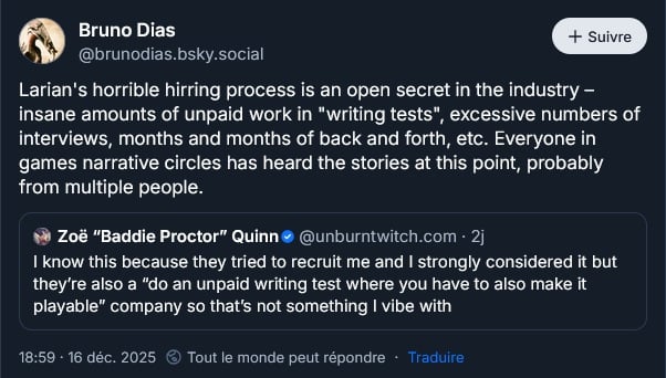 Les anciens employés de Larian balancent sur la présence de fascistes dans les bureaux, le harcélement sexuel, et le processus de recrutement incluant des quantités de travail non-payé :