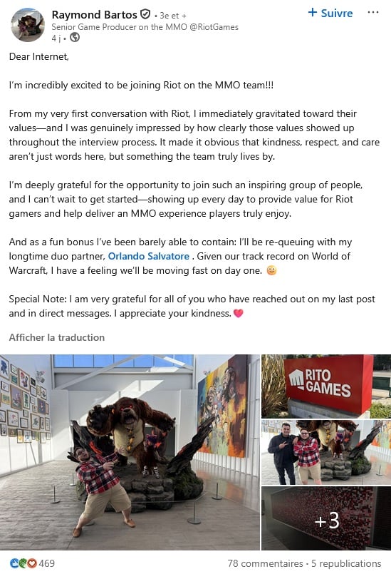 Des nouvelles du MMORPG League Of Legends avec le recrutement de Raymond Bartos :