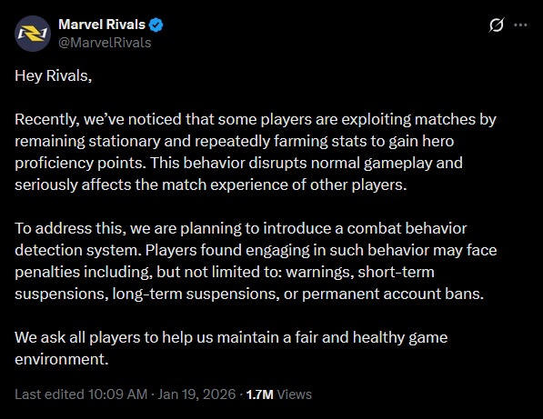 Marvel Rivals va faire quelque chose contre les farmeurs parasites de points. Oui, ceux qui sont connectés mais ne jouent pas :