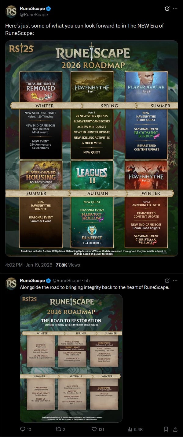 Roadmap 2026 pour Runescape :