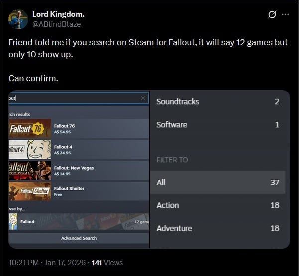 Il se passe encore des choses louches sur les pages Steam des jeux Fallout :