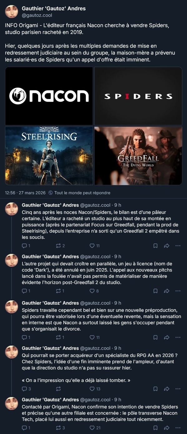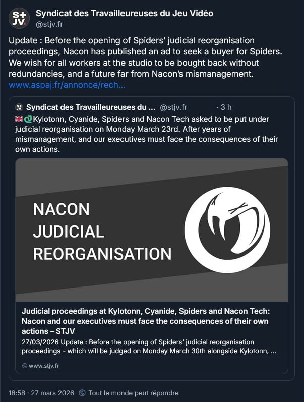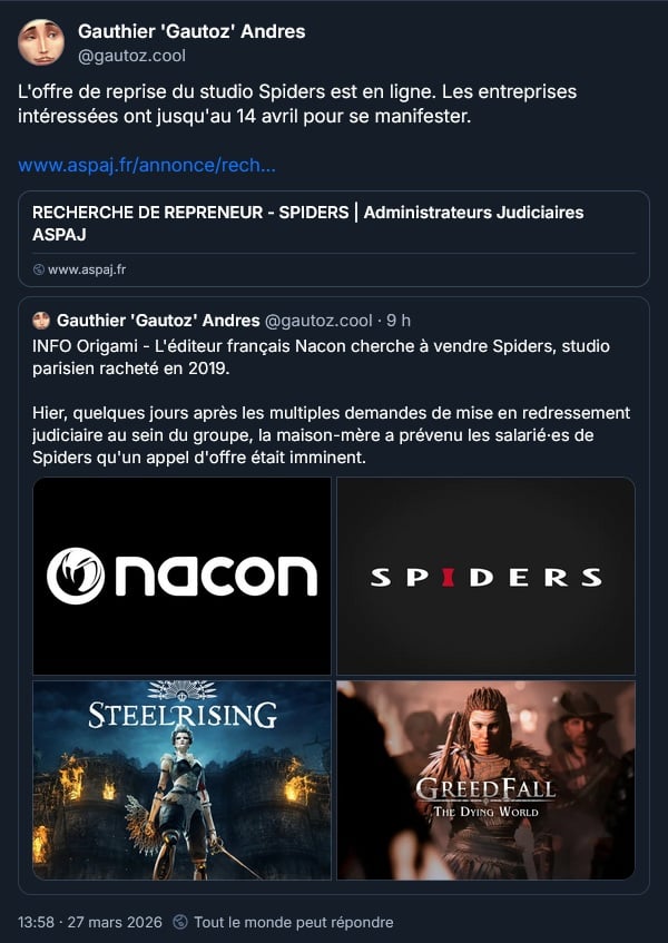 Nacon cherche à vendre Spiders, et le pôle Nacon Tech :