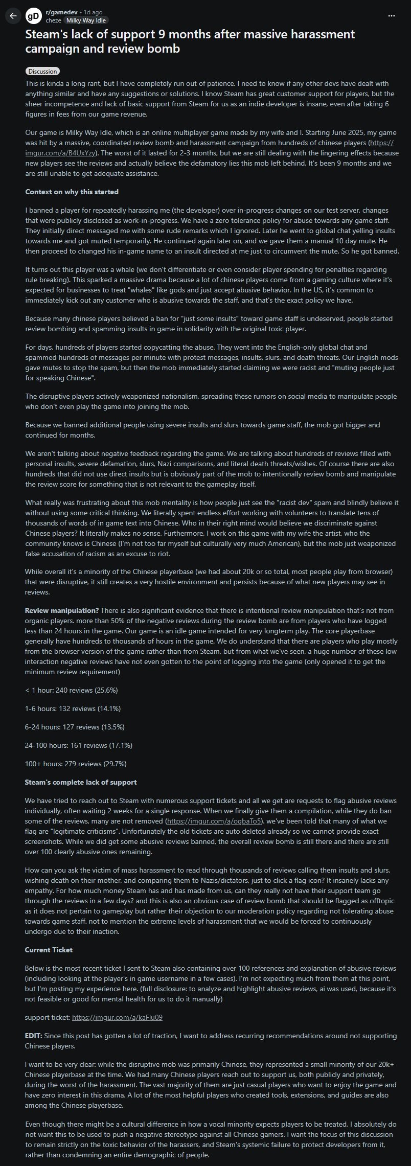 https://www.polygon.com/steam-milky-way-idle-chinese-fans-harassment-racism-valve/