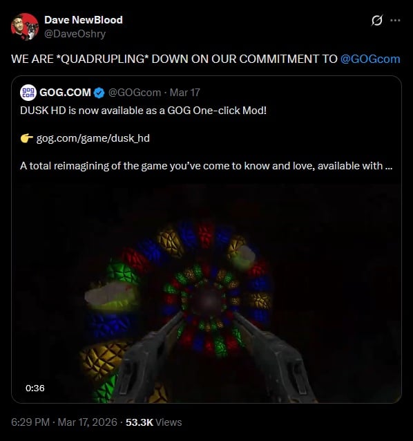Dave Oshry, CEO de New Blood, aime GOG :