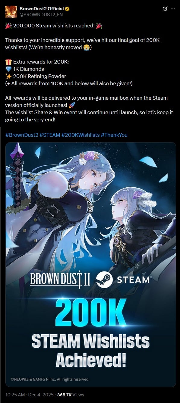 Le gatcha Brown Dust 2 a été banni de Steam deux jours après s’être félicité des 200.000 wishlists, pour une raison pour le moment inconnue :