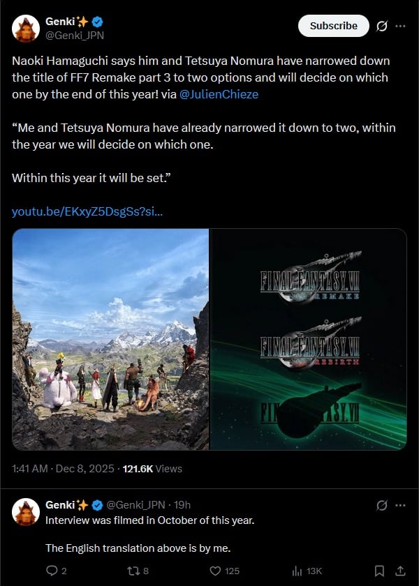 Le titre de la dernière partie de Final Fantasy VII Remake va être choisi avant la fin de l’année :