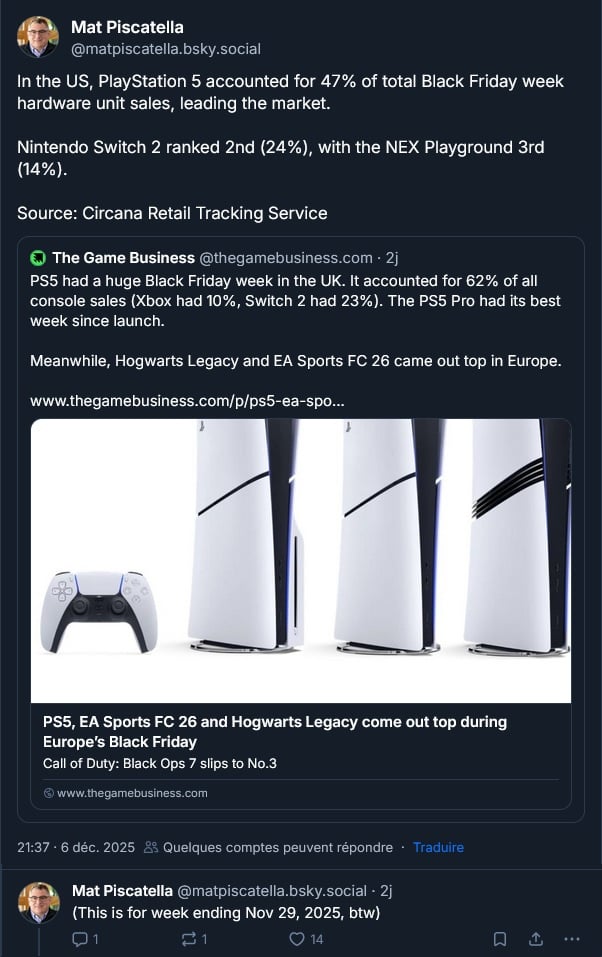 Les meilleures ventes de Hardware pendant le Black Friday aux États-Unis par Mat Piscatella :