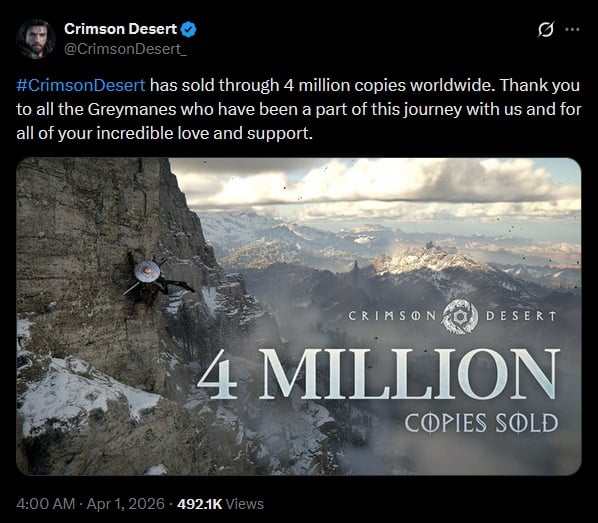 4 millions de copies vendues pour Crimson Desert :