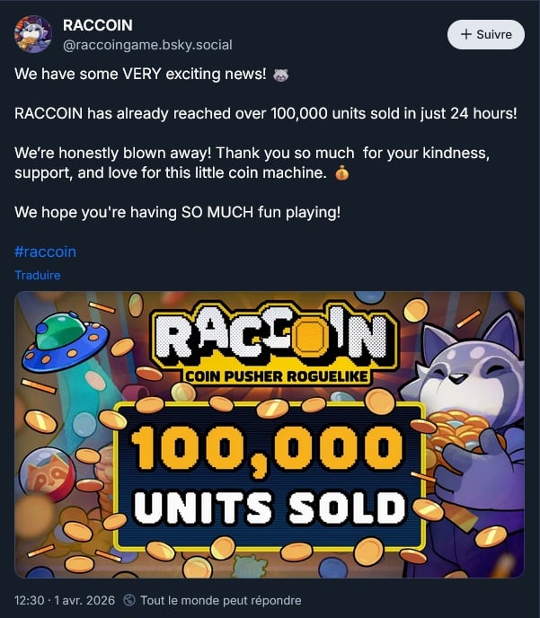 100.000 copies vendues pour RACCOIN: Coin Pusher Roguelike :