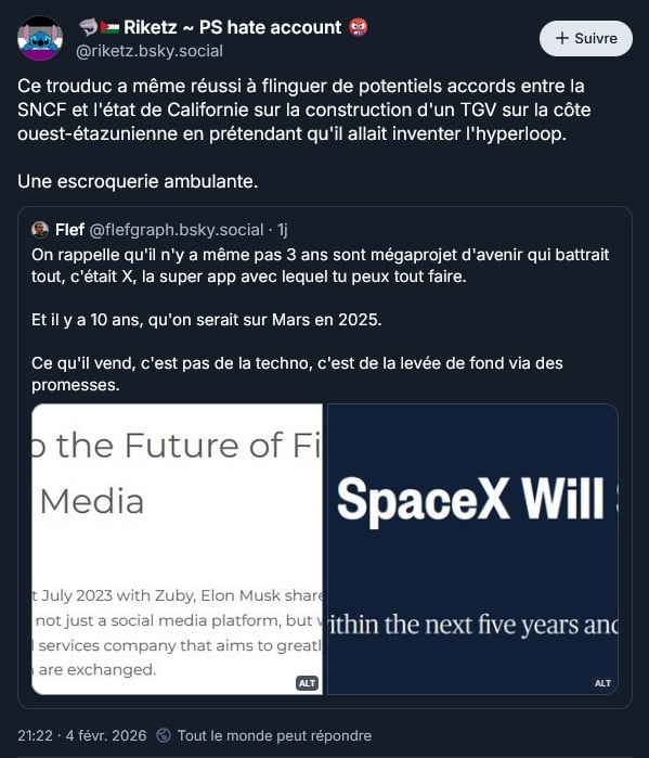 Aujourd’hui, à propos de Twitter ou des autres compagnies d’Elon Musk :