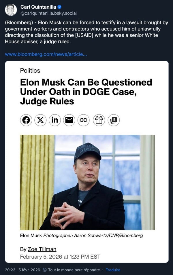 Elon peut être forcé à témoigné concernant la dissolution de l’USAID par le DOGE :