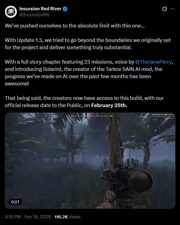 Le 25 Février sera le jour de la mise à jour 1.3 pour l’extraction-shooter en accès anticipé Incursion Red River :