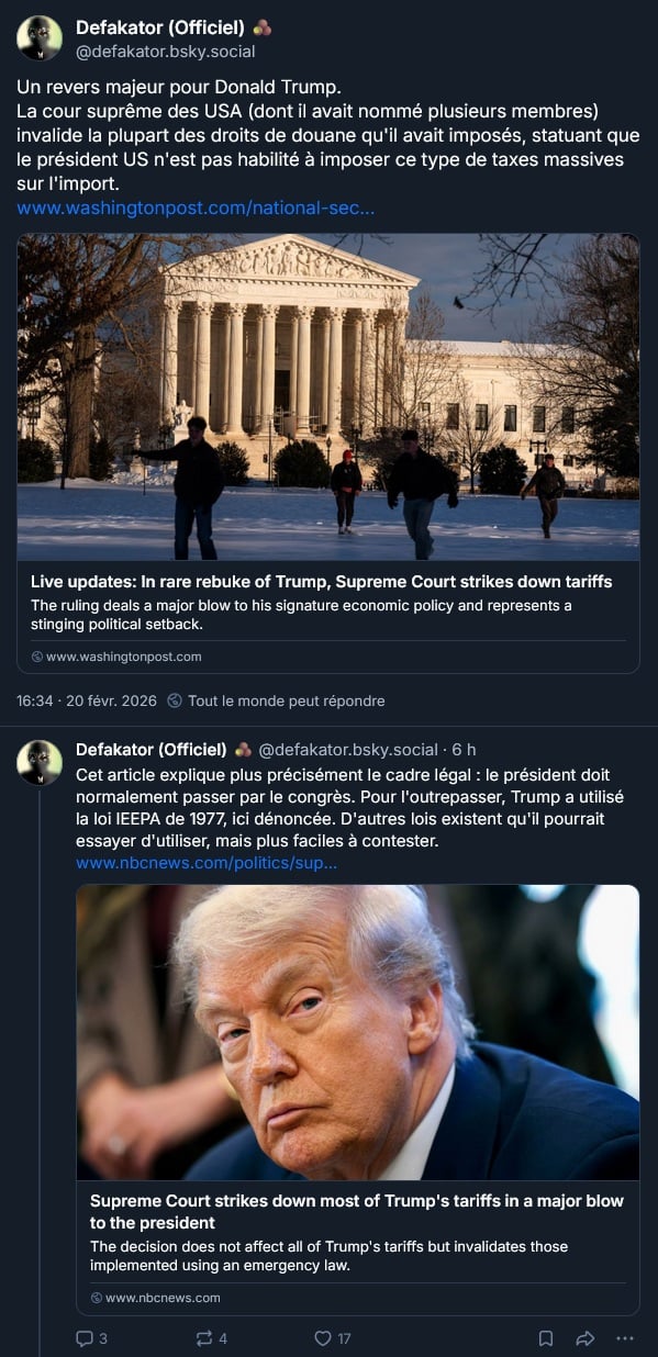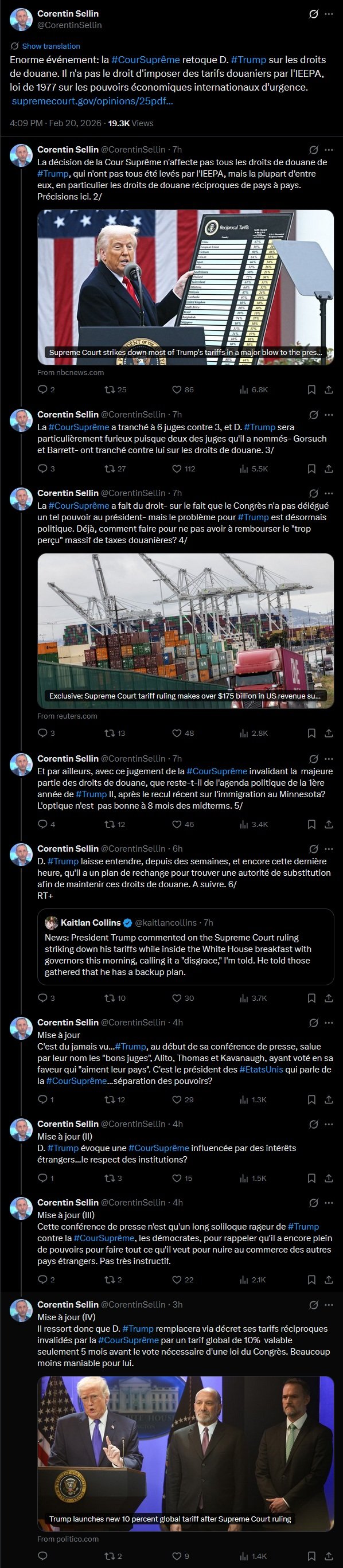 La Cour Suprême états-unienne a jugé certaines des taxes douanières aléatoires de Donald illégales :
