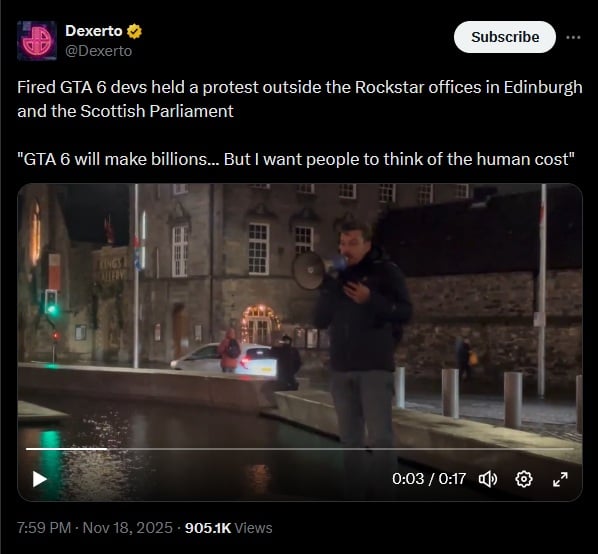 Un employé licencié manifestant devant Rockstar North a évoqué les conditions de travail à chier dans l’entreprise :