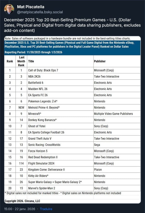 Le jeu le plus vendu de 2026 aux États-Unis est … Battlefield 6 :