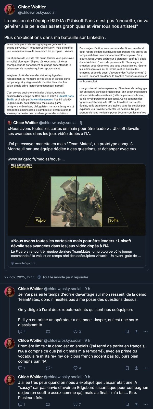 Des précisions à propos du projet Teammates à base de coéquipiers IA d’Ubisoft … Après … Le problème de l’IA générative, c’est ce qu’on arrivera à lui faire faire même si ça lui est interdit :