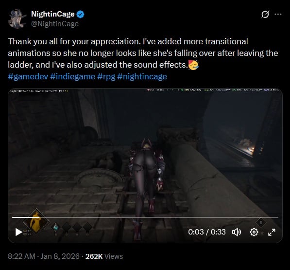 Cette animation a fait exploser le nombre de wishlists au Japon pour l’action-RPG NIGHTIN CAGE qui sort un jour prochain sur Steam :
