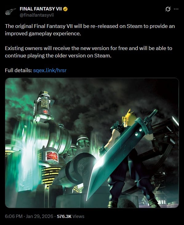 Final Fantasy VII ressort bientôt sur Steam. La nouvelle version sera gratuite pour les possesseurs de l’ancienne, qui sera renommée Final Fantasy VII - 2013 Edition :