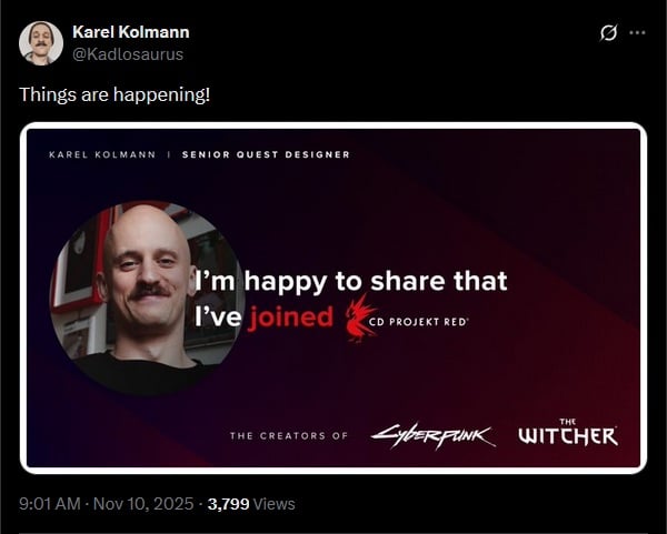 Karel Kolmann a rejoint CD Projekt Red :
