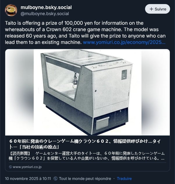 Taito cherche un exemplaire de la première machine qu’ils ont commercialisé :