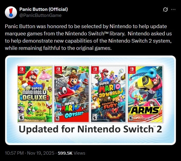 Panic Button travaille sur plusieurs updates de jeux Switch 2 :