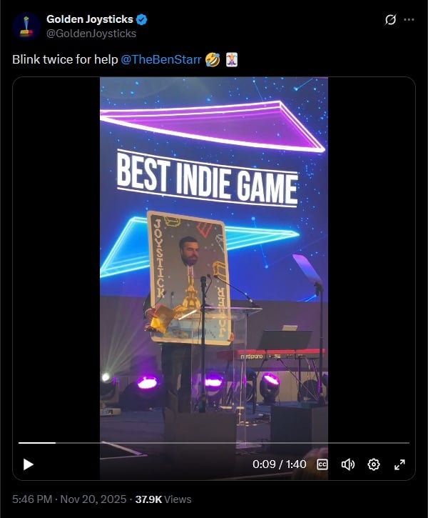 Ben Star a dit des trucs très pertinents aux Golden Joystick Awards :