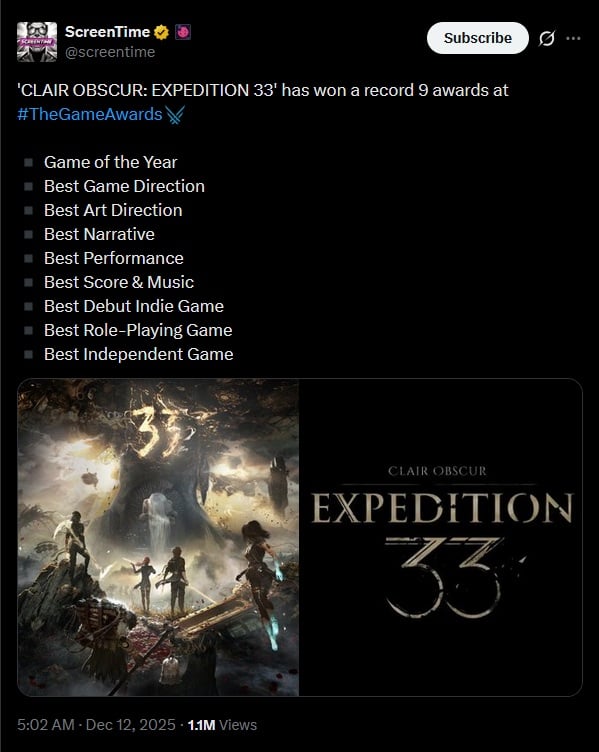 Les gagnants des Game Awards 2025 sont … Clair Obscur: Expedition 33 et d’autres … Fatal Fury: City of the Wolves comme meilleur jeu de combat ? Sérieux ? :