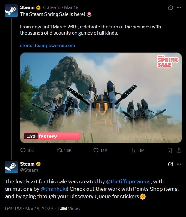 Steam a crédité l’artiste qui a réalisé la bannière des promotions du Printemps :