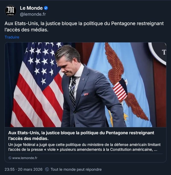 Les nouvelles règles du Pentagone pour la presse ont été jugées inconstitutionnelles :