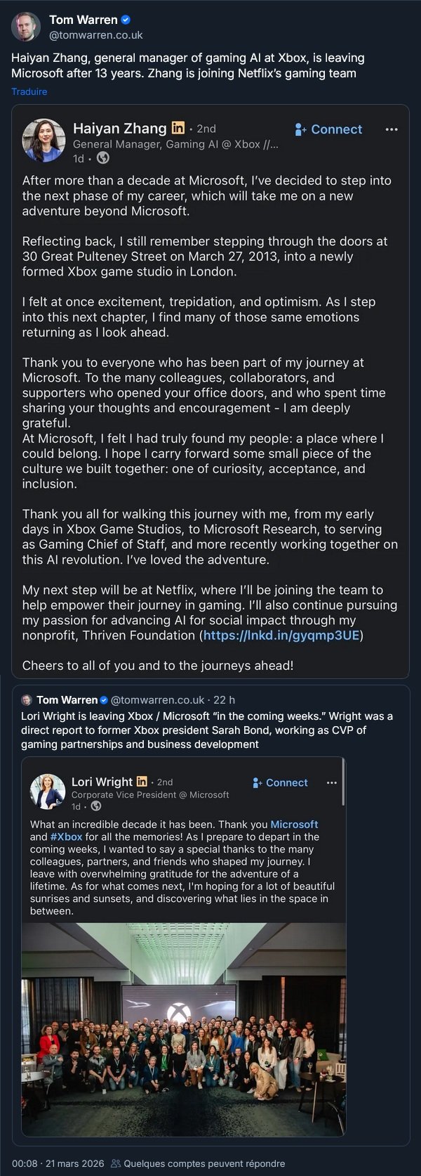 Haiyan Zhang passe de Xbox à Netflix. Lori Wright quitte aussi Xbox :