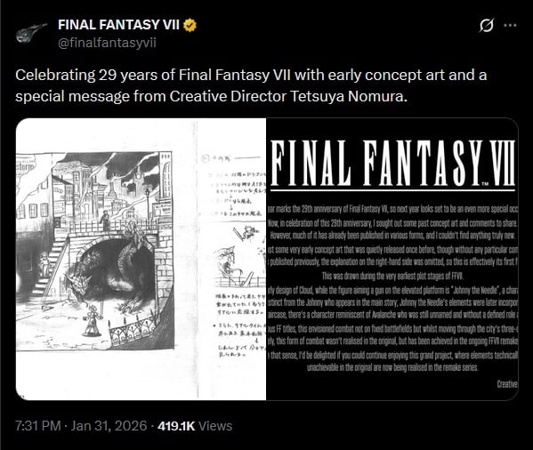 Un concept-art pour Final Fantasy VII pour les 29 ans du jeu. Et des infos sur le système de combat qu’aurait eu le jeu sans les contraintes techniques :