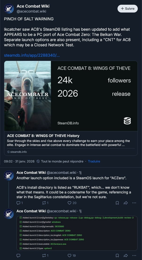 Ace Combat 7 Zerosera un bonus de précommande pour Ace Combat 8 selon SteamDB :
