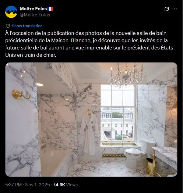 Une note sur les travaux à la Maison Blanche :