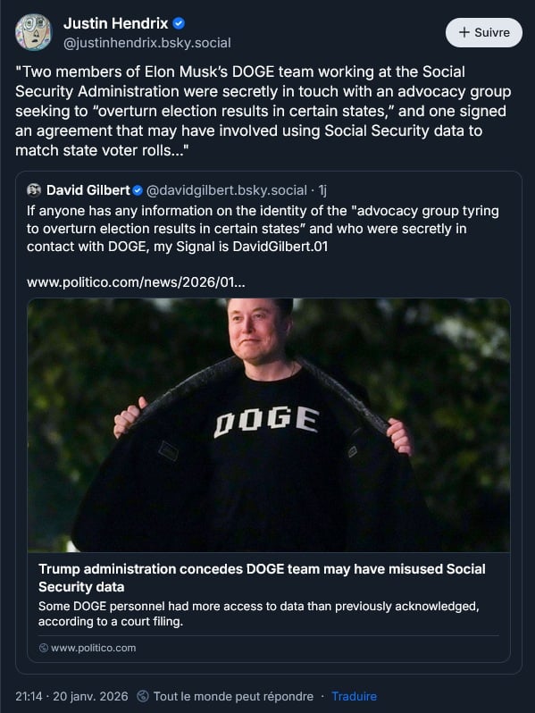 Le DOGE a bien récupéré les données de la Sécurité Sociale états-unienne, auxquels il n’aurait pas dû avoir accès, pour les fournir à un groupe visant à inverser les résultats des élections dans certains états :