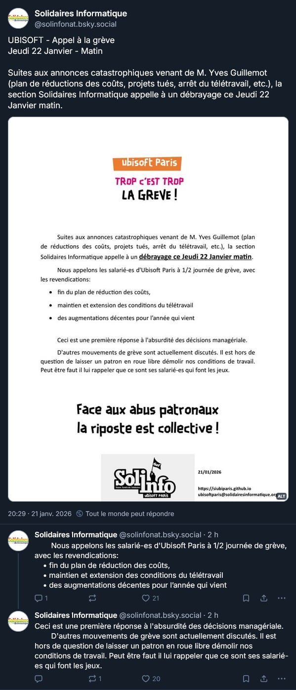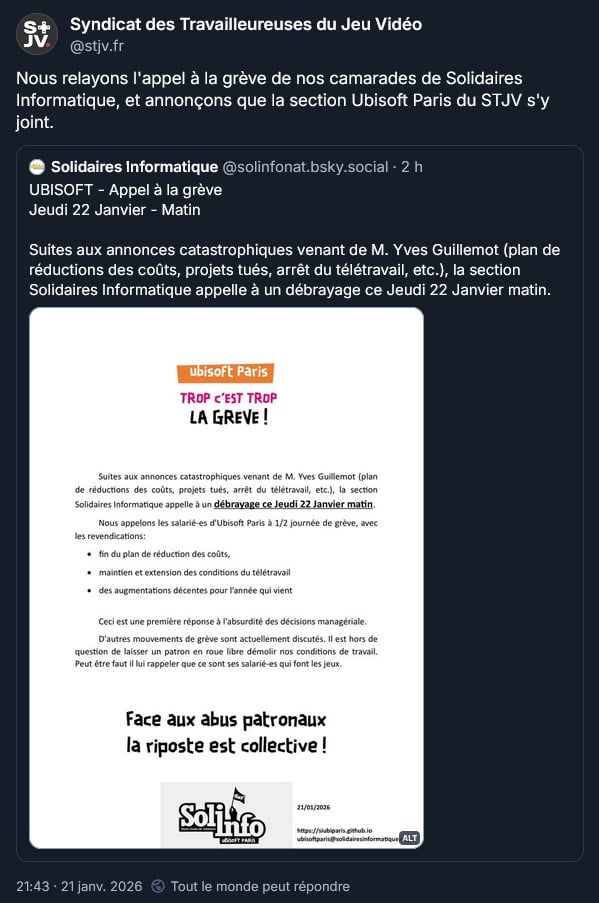 Et appel à la grève des syndicats Solidaires Informatiques et du STJV :
