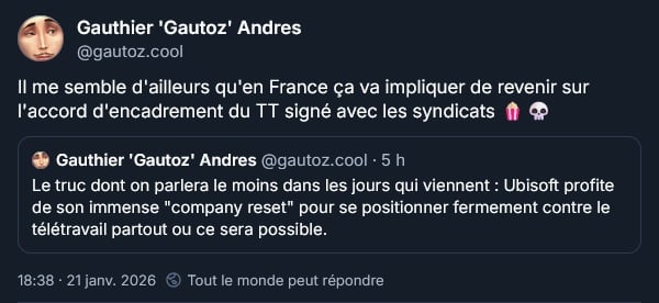 Aussi, retour obligatoire au bureau tous les jours avec un nombre annuel de jours de télétravail autorisés :