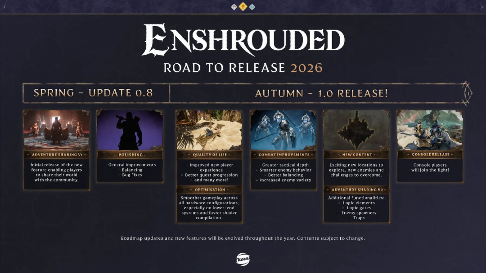 Le jeu de survie-craft Enshrouded sort d’accès anticipé cet Automne sur Steam, PS5 et Xbox Series. Et une roadmap d’ici-là :