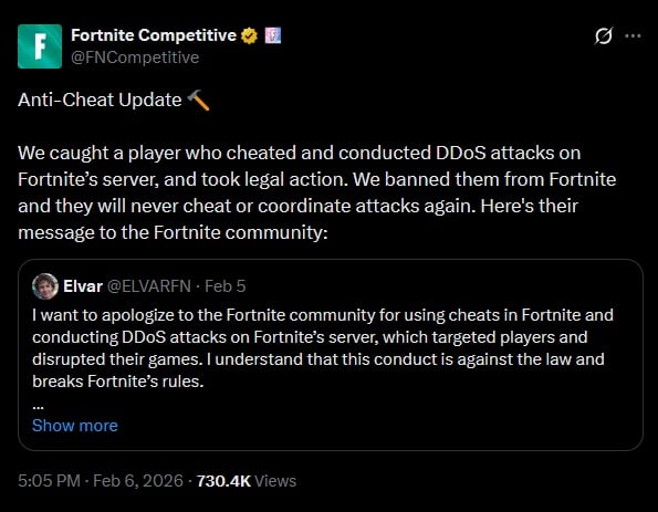 Un autre tricheur sur Fortnite est obligé de s’excuser publiquement (au lieu de devoir aller en cours) :