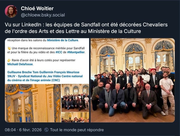 L’équipe de Sandfall a été élevée au rang de Chevalier de l’Ordre des Arts et des Lettres :