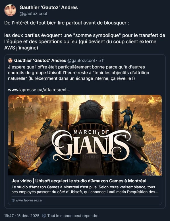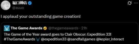 Hironobu Sakagushi a été un peu touché par les remerciements de Guillaume Broche aux Games Awards :