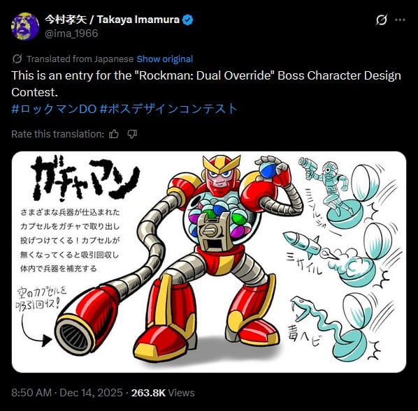 Capcom a proposé une compétition de design de boss de Mega Man. Takaya Imamura passait par là :