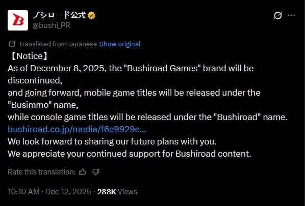 Bushiroad ferme la marque Bushiroard Games et va se mettre à éditer ses jeux sous son nom ou le nom de Bushimo pour les jeux mobiles :