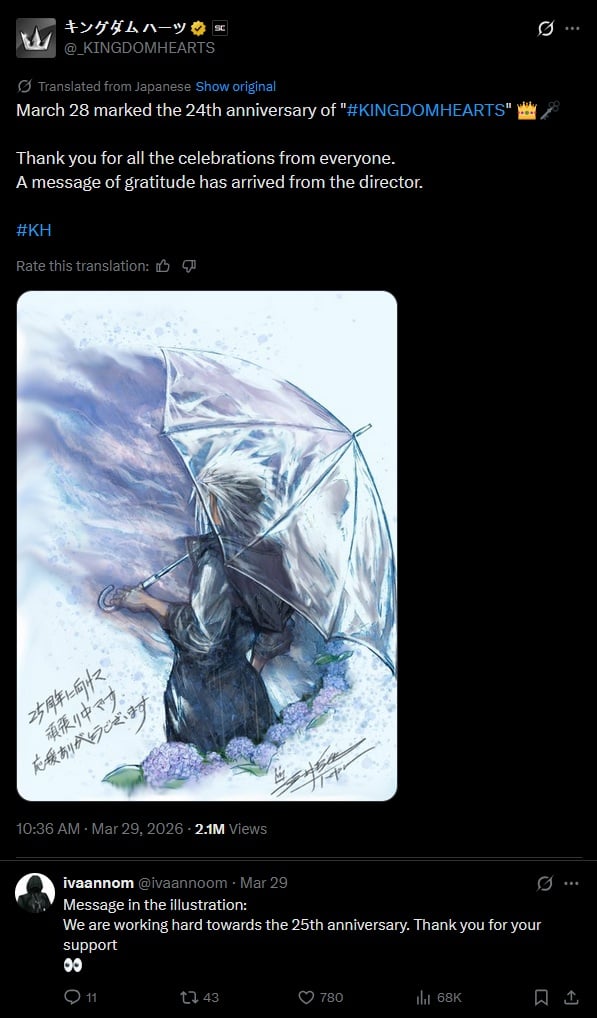 Après un message pour les 24 ans de Kingdom Hearts, les spéculateurs ésotériques parlent d’un rendez-vous pour de nouvelles infos concernant Kingdom Hearts 4 l’année prochaine :