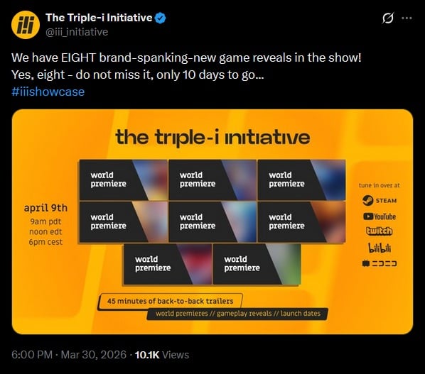 8 nouveaux jeux seront présentés à la Triple-I Initiative du 9 Avril :